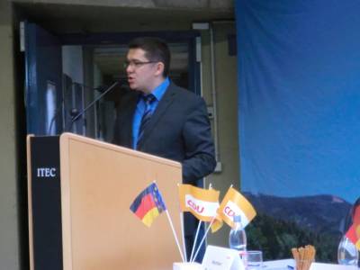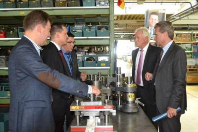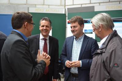 der EU-Kommissar Guenther H. Oettinger im Rahmen des Bundestagswahlkampf 3013 mit Thorsten Frei und Dr. Andreas Schwab bei MEKU in Dauchingen